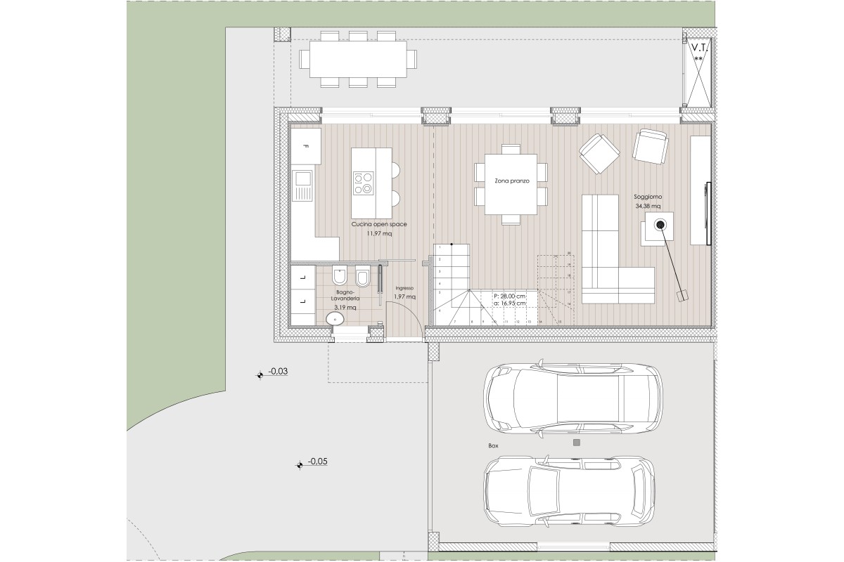 Completa la proprietà un box doppio in larghezza di circa 40 m2.